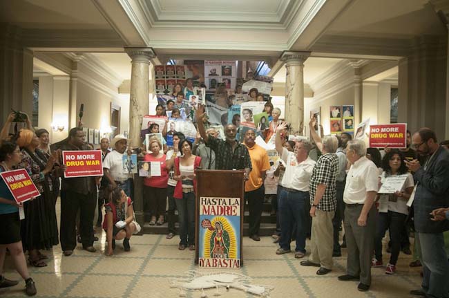 Los acompañaron representantes de la Asociación Nacional para el Progreso de las Personas de Color (NAACP) y de LEAP, una organización conformada por policías actuales y en retiro, funcionarios de gobierno y otros agentes de las fuerzas armadas en contra de la prohibición de las drogas y de la actual “Drug War”.