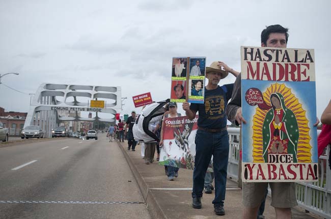 Miércoles 29 – Montgomery, Alabama. La caravana cruzó el puente Edmund Pettus, uno de los escenarios clave de la lucha por los derechos civiles de los afroamericanos en los años 60.