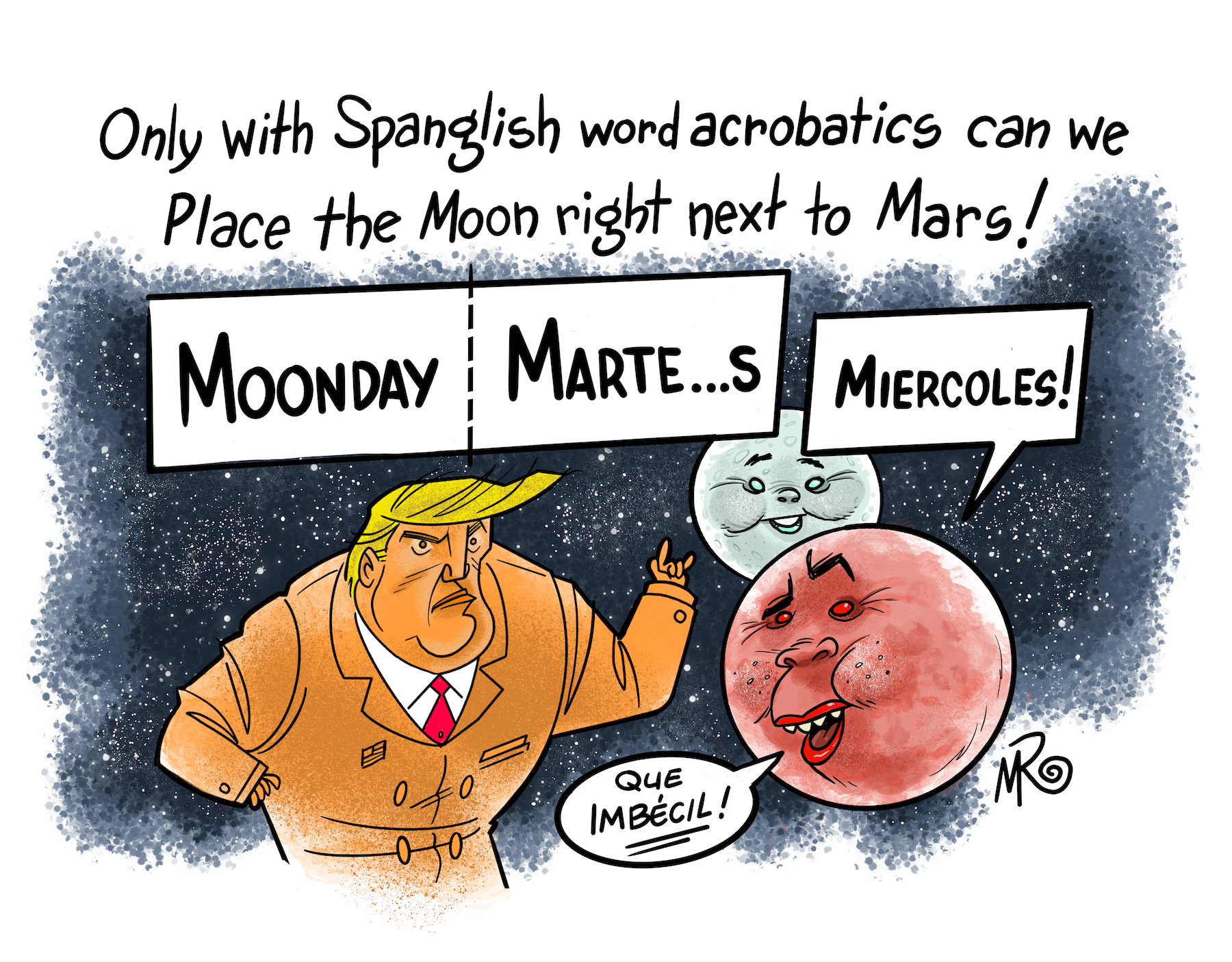 Este bloguero tuvo el gusto de trabajar con Moe durante los años 80 en una agencia de publicidad en New York. Debido a que la publicidad, por ser un elemento integral del capitalismo en su forma más agresiva, atrae más a la gente de derechas, la realidad es que no hablamos nunca de política. Trabajamos como un equipo, o dupla; él de dibujante, este servidor de redactor. Fueron un par de años inolvidables de largas horas, muchas risas, relativamente poco dinero. Pero que no los cambiaría por nada. Nos mantuvimos en contacto primero infrecuente, luego gracias a la revolución digital, con mayor regularidad. Viendo sus caricaturas, en su inconfundible estilo, pude apreciar que en muchos casos compartimos la misma visión del mundo. Moe ayudó a ilustrar el cuento Cuarentena. Y aquí presentamos ésas y otras más.