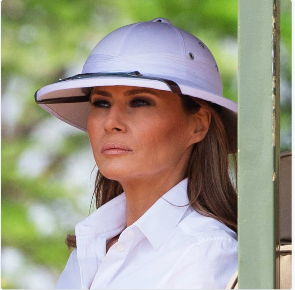O bien la resistencia a Donald Trump está buscando de qué quejarse, como alegan sus partidarios. O el casco que usó la Primera Dama de EUA, Melania Trump, en su visita por Africa ha sido una metida de pata garrafal. Equivalente, hemos escuchado decir, a llevar una camiseta con la bandera racista del sur de EUA a una fiesta afromericana.