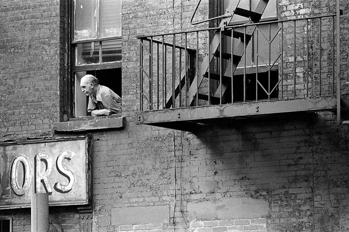LB: La única vez que upieron que yo los estaba fotografiando es la foto de los niños de la escuela parroquial del barrio chino. Para el resto, ya fuera utilizando un teleobjetivo, o disparando desde la cadera como cuando veía gente en las calles en Times Square. Una vez me atreví a llevar una cámara al interior de un peep show en el Times Square antiguo, a mediados de los años setenta. Una de las damas vio la cámara y antes de poder darme cuenta un tipo grande estaba golpeando la puerta de la cabina, llevándose la película de mi cámara. Yo ya tenía un rollo en el bolsillo, así que tuve algunas fotos X my buenas. Sobra decir que me pidieron que me marchara.