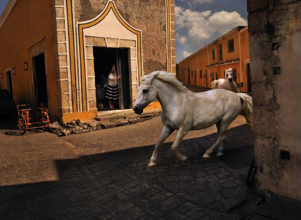 Mediante la serie “Soñando hacia atrás”, Tom Chambers expresa su angustiosa nostalgia por una cultura que se esfuma a la vez que aprecia la magia que vivió en esa nación. “Utilizando “Realismo Mágico”, he intentado crear imágenes de México que parecen ser ciertas y creíbles, pero tal vez improbables. Estos fotomontajes ilustran mis sueños por la gente de México para que puedan retener la autenticidad de su cultura”.