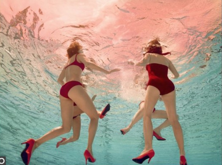 “Glass Ceiling” incluye fotos tomadas bajo el agua de bailarinas y atletas con coloridos trajes de baño y tacones. Las imágenes han sido alteradas con tecnología digital, siendo esta “manipulación” un aspecto que define su trabajo. Adobe Photoshop forma parte de sus herramientas por años.
