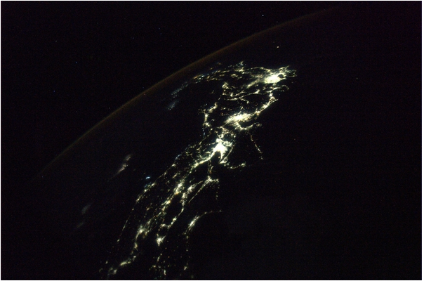 “De noche, la tierra vista desde el espacio es un hermoso mosaico de luces que alborota la imaginación. Tierra, agua, clima, costa, tecnología, acceso todos definen la magistral huella y un conglomerado de luces marca nuestra presencia en el planeta”, escribe por twitter desde el espacio Doug Wheelock, el comandante de la Expedición 24-25, en la estación espacial desde junio del 2010. La misión se completa en marzo del 2011.