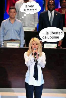 Un lapsus lingüe de Shakira alteró el himno nacional colombiano, lo cual ha dado mucho de que hablar a través de las redes sociales, donde se ha creado un personaje Ublime, cuya libertad muchos en Colombia exigen.