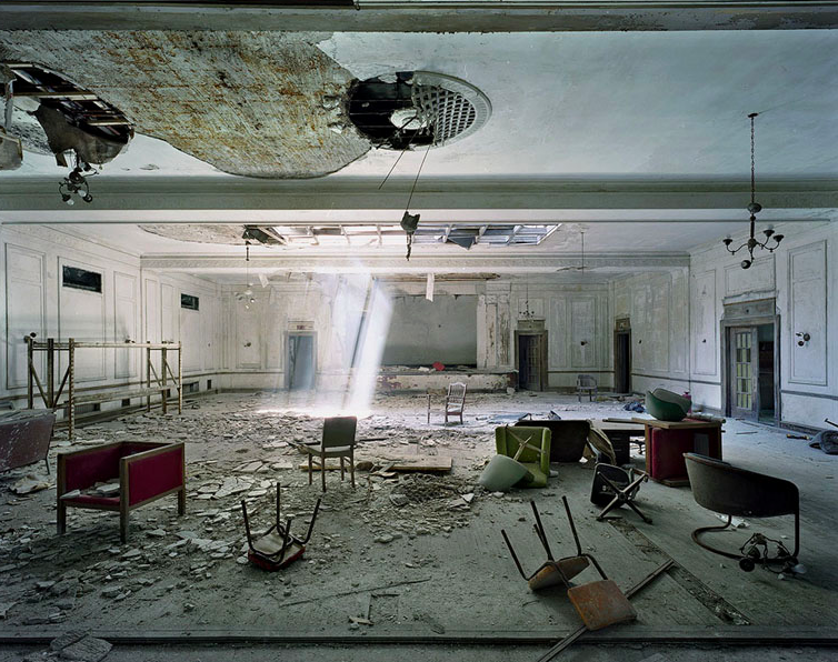 “Las ruinas son los símbolos y monumentos visibles de nuestras sociedades y sus cambios — pequeños trozos de la historia en suspensión. El estado de ruina es temporal por naturaleza: volatil resultado del fin de una era y la caída de los imperios. Esta fragilidad, el tiempo transcurrido pero aún así corre rápidamente, nos lleva a verlas una última vez: estar consternados, o admirar, preguntándonos acerca de la permanencia de las cosas. La fotografía pareció como una manera modesta de preservar un poco de este estado efímero”.