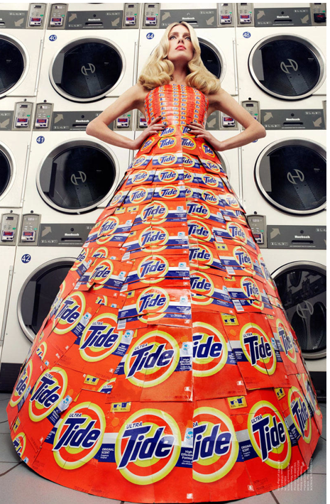 Además, como puede verse aquí claramente, es algo lanzado con la sección de vestidos confeccionados con materiales como cajas de jabón, dulces M&M, latas de coca cola y otros.