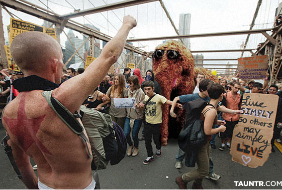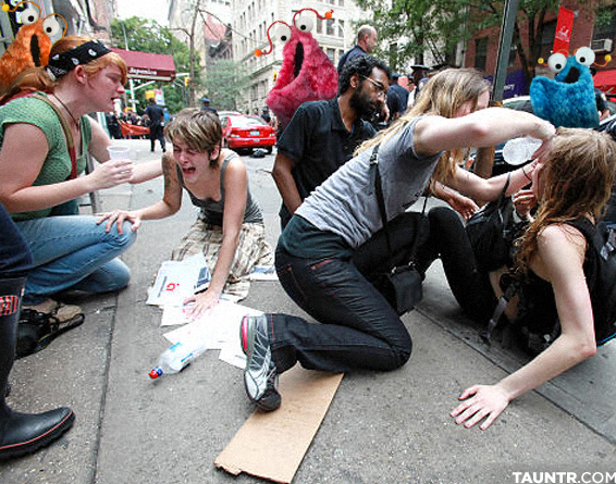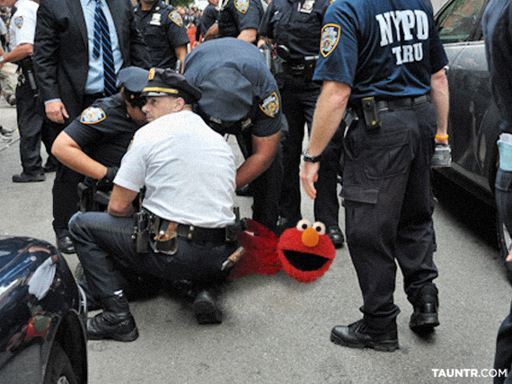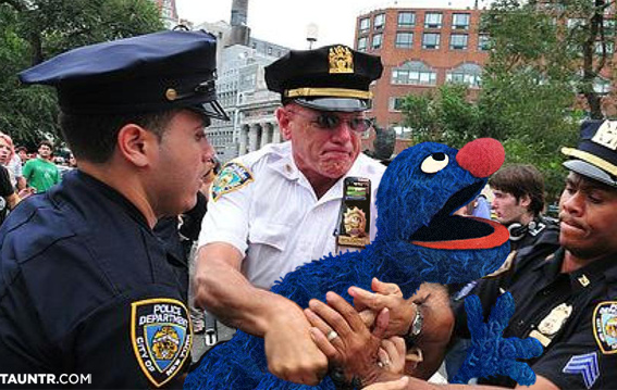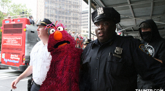 Aquí, cortesía de la página Tauntr.com documentamos la brutalidad con que las autoridades neoyorkinas atacaron los muchachos de Plaza Sésame, que únicamente querían decir “las condiciones en EUA están inaguantables”.