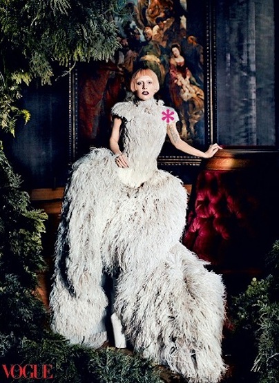 Además de las fotos, entrevista a Lady Gaga Jonathan Van Meter. Respecto a su estilo, dice la diva: “Lady Gaga se comporta como si fuera un miembro del séquito de María Antonieta: la peluca empolvada, el traje de enlace, la cortesía impecable […] Para ser una persona tan excéntrica, soy bastante sencilla”.