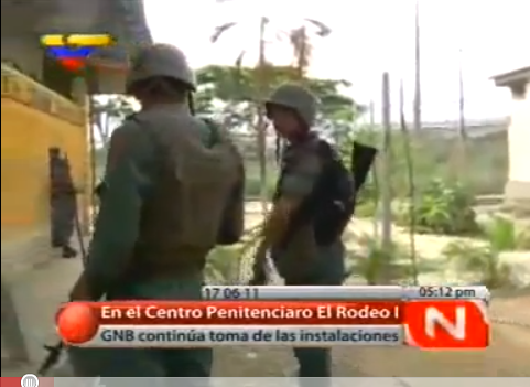 ACTUALIZACION 6/20/2011. 11:00 am EST (HORA NEW YORK) REPRODUCIMOS A CONTINUACION COMENTARIO Y ENTREVISTA DE RADIO FRANCIA INTERNACIONAL.”Desde el viernes 17 de junio más de 4.000 efectivos militares intentan tomar el control del penal El Rodeo.La crisis comenzó hace varios días cuando se enfrentaron bandas rivales en una reyerta carcelaria, dejando un saldo de 22 presos muertos. Según las autoridades, prosigue el enfrentamiento con un núcleo de detenidos, controlados por cabecillas dentro de la prisión”. Audio de la corresponsal de RFI en Caracas, Andreina Flórez.