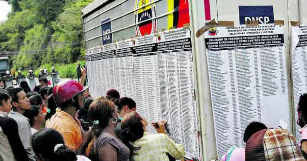 “Ayer en la mañana llegó a Yare II un grupo de alrededor de 100 mujeres en autobuses para buscar los nombres de sus parientes en las listas divulgadas por el Ministerio de Relaciones Interiores y Justicia, que estaban pegadas en la entrada del retén. La información fue publicada en 10 hojas y contenía los datos de los 800 reos trasladados desde Rodeo I.